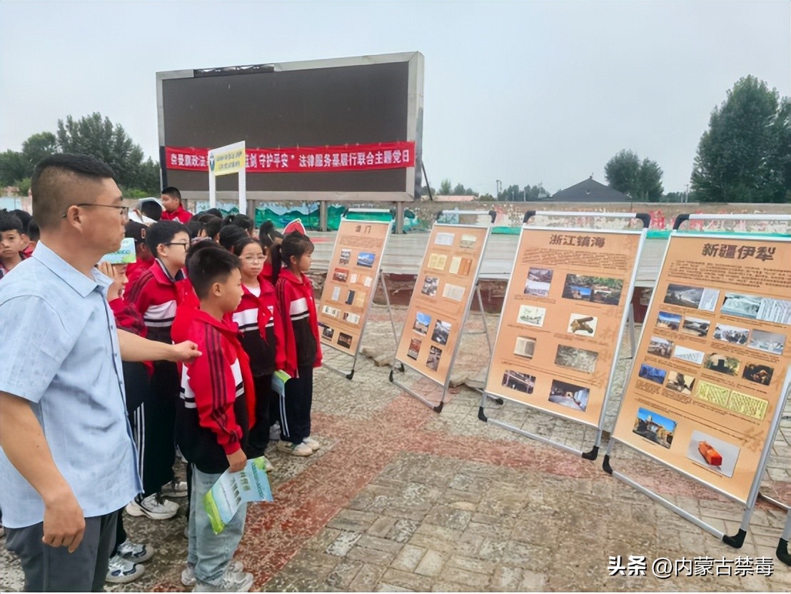 在林则徐诞辰240周年之际,通辽市奈曼旗公安局以政法系统“红心蓝剑 守护平安”法律服务基层联合主题党日为契机,联合政法委、东明镇政府及社会各界,在东明镇东明村广场开展禁毒先驱林则徐生平史绩全国“十馆联展”宣传活动。